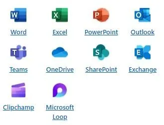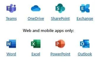 Web and mobile versions of Word, Excel, PowerPoint, and Outlook